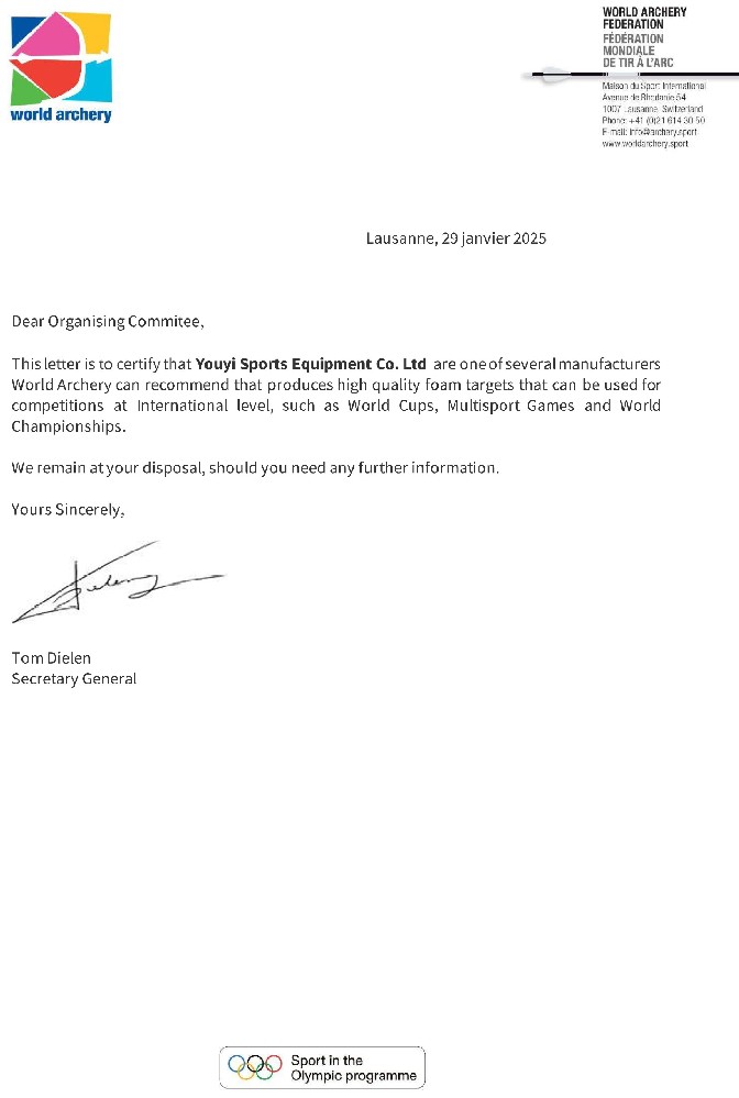 公司自主生產(chǎn)的器材先后成為2008年北京奧運會、2010年廣州亞運會、2011年深圳世界大學(xué)生運動會、2014年南京青奧會、2021年成都世界大學(xué)生運動會、2022年杭州亞運會等世界知名賽事射箭器材供應(yīng)商。